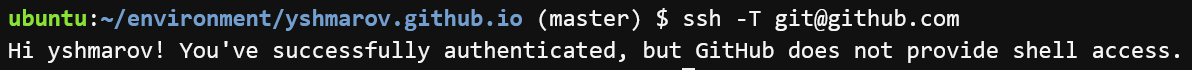 That’s it! Next time you git push anything, it should authenticate automatically, and you’ll not have to enter your credentials on C9 again.